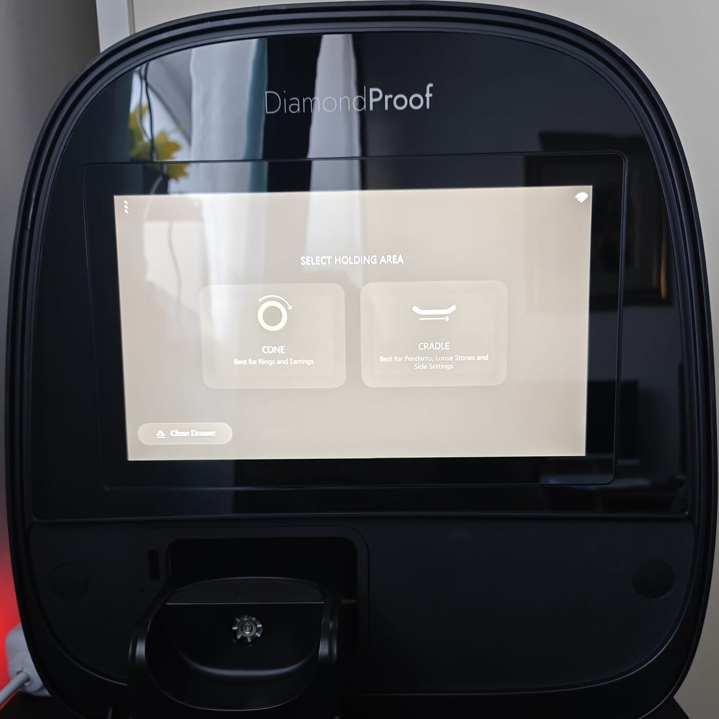 DiamondProof to jedno z najbardziej zaawansowanych urządzeń do szybkiego rozróżniania diamentów naturalnych od syntetycznych (laboratoryjnych). Urządzenie zapewnia prawie 100% pewności przy ocenie pochodzenia kamienia, działając w oparciu o analizę reakcji fotoluminescencyjnych.