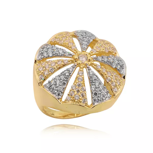 Pierścionek stworzony w duchu klasycznego jubilerstwa. Połączenie złota z kamieniami barwnymi lub bezbarwnymi nadaje mu elegancki i luksusowy charakter.