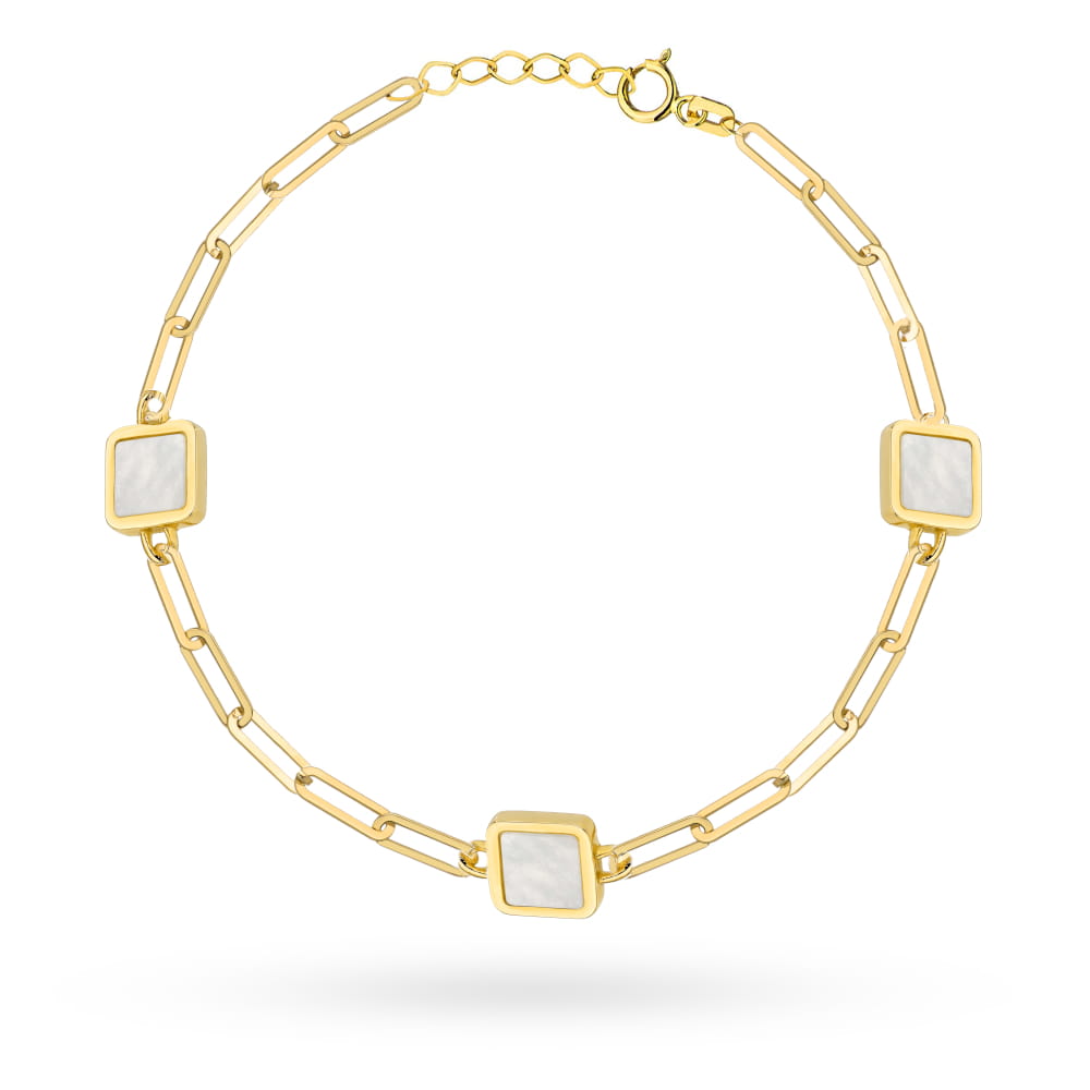 Bransoletka złota długie ogniwa i kwadraty z masą perłową