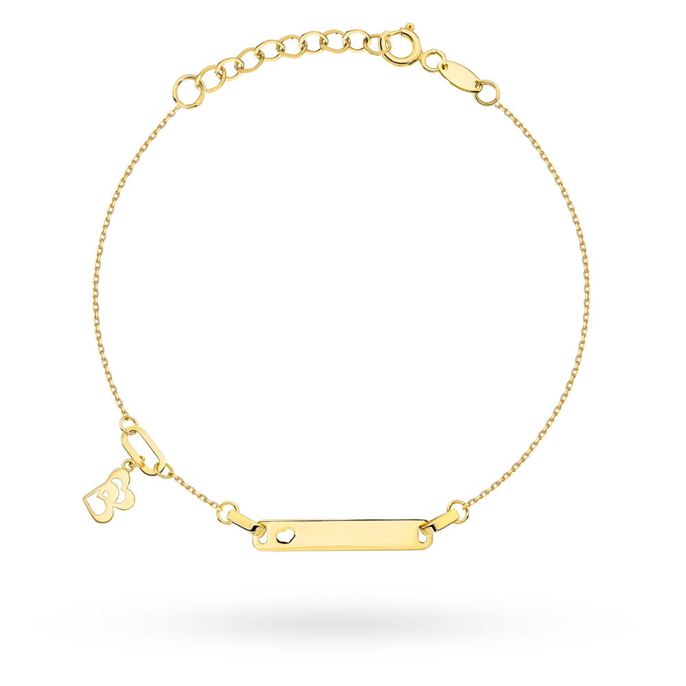 Bransoletka złota z blaszką i wiszącymi splecionymi serduszkami