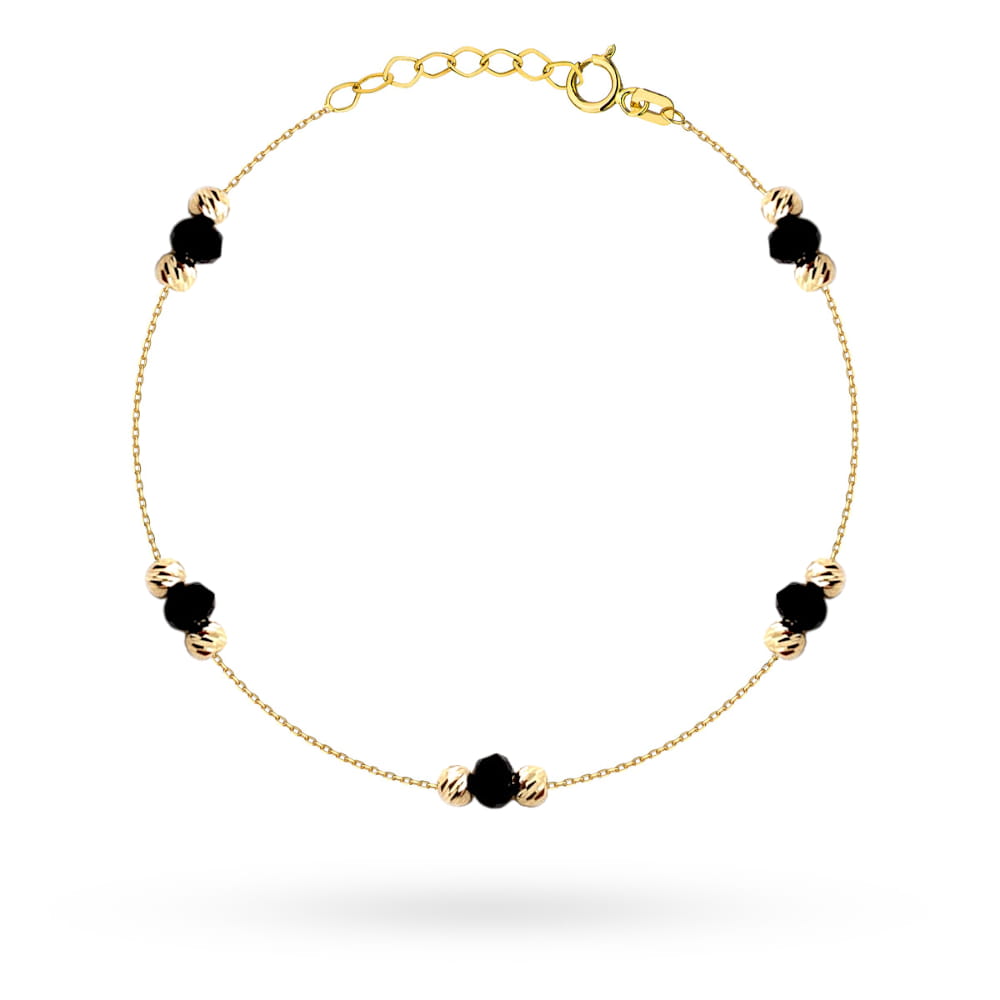 Bransoletka złota z czarnymi kamieniami i diamentowanymi kulkami