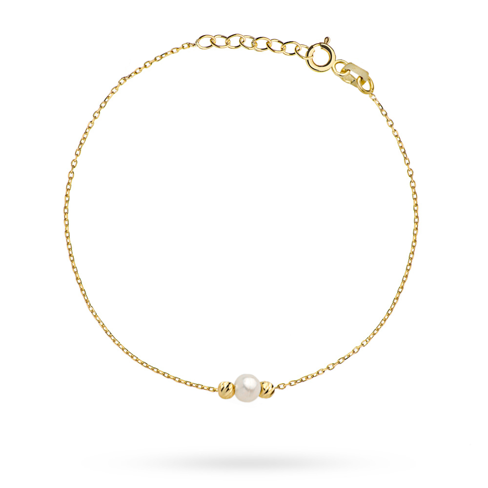 Bransoletka złota z perłą i diamentowanymi kulkami