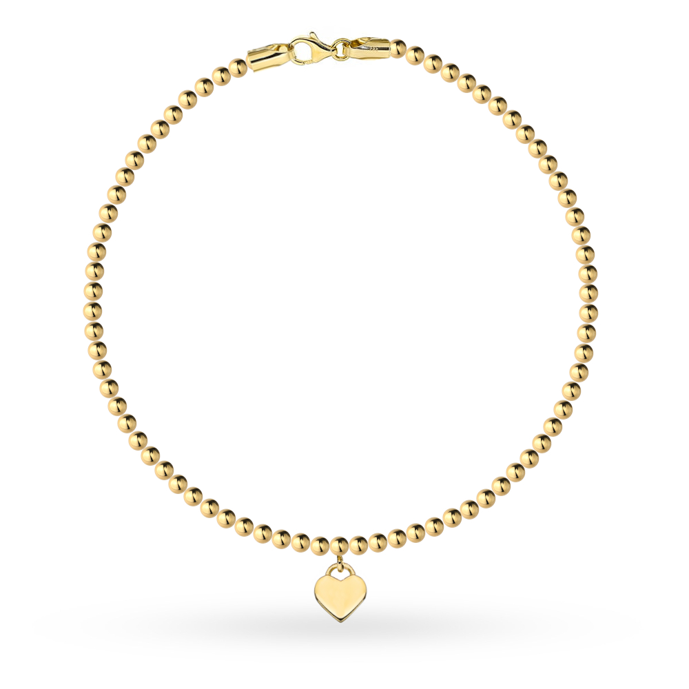 Bransoletka złota złożona z gładkich kuleczek i wiszącym sercem