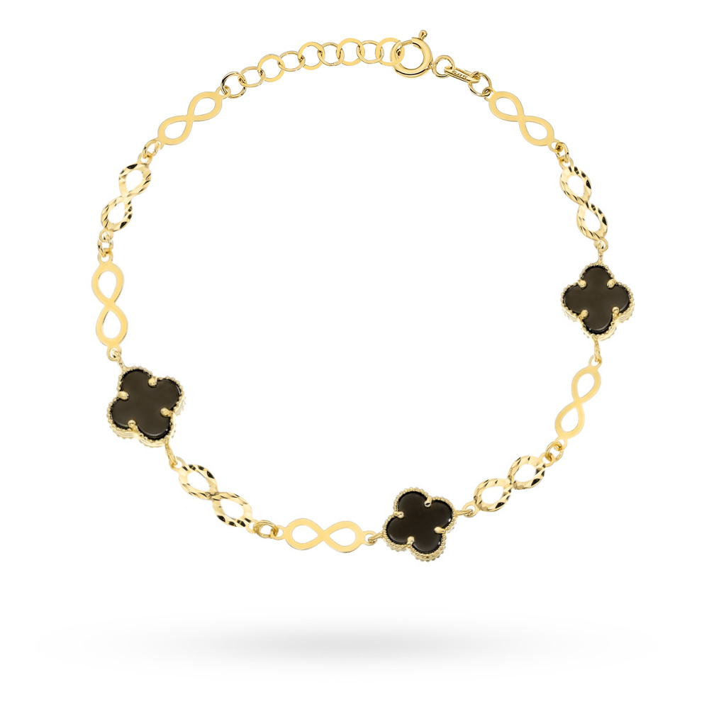 Bransoletka złota znaki nieskończoności i czarne koniczynki