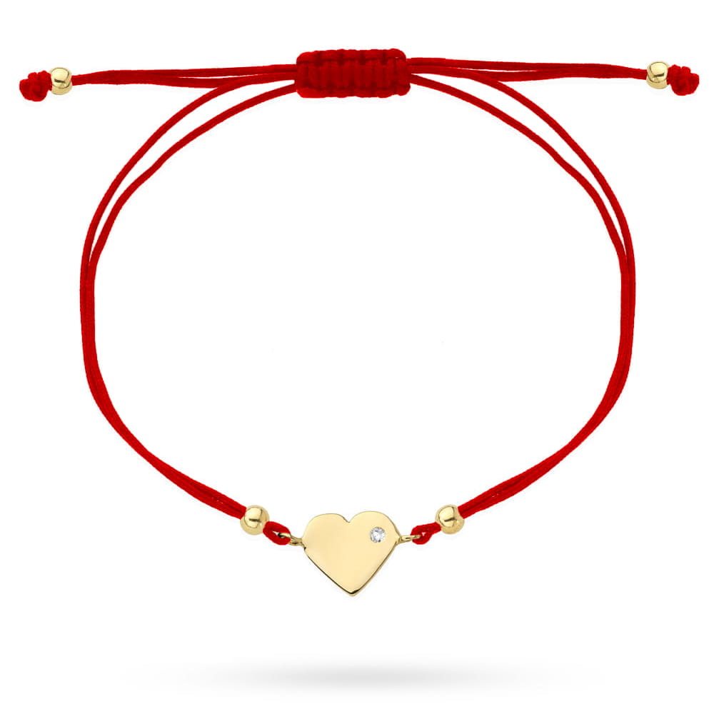 Bransoletka złote serce z cyrkonią na czerwonym sznurku
