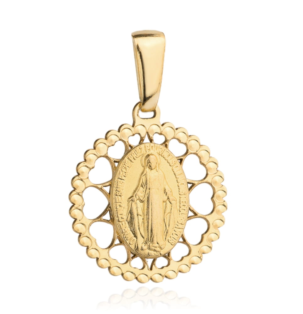 Precyzyjnie wykonany złoty medalik próby 585. Cudowny medalik z wizerunkiem Matki Boskiej. Złoty medalik to pamiątka chrztu, pierwszej komunii, bierzmowania, ważnego jubileuszu czy rocznicy.
