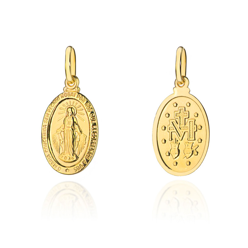 Precyzyjnie wykonany złoty medalik próby 585. Cudowny medalik z wizerunkiem Matki Boskiej. Złoty medalik to pamiątka chrztu, pierwszej komunii, bierzmowania, ważnego jubileuszu czy rocznicy.
