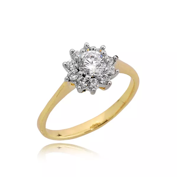 Pierścionek wykonany ze złota próby 0,333 lub 0,585 w kolorze żółtym, białym lub różowym. Może być ozdobiony diamentami naturalnymi, diamentami laboratoryjnymi, cyrkoniami lub kamieniami barwnymi. Staranna oprawa zapewnia trwałość oraz piękny połysk przez lata. Doskonały wybór na prezent.