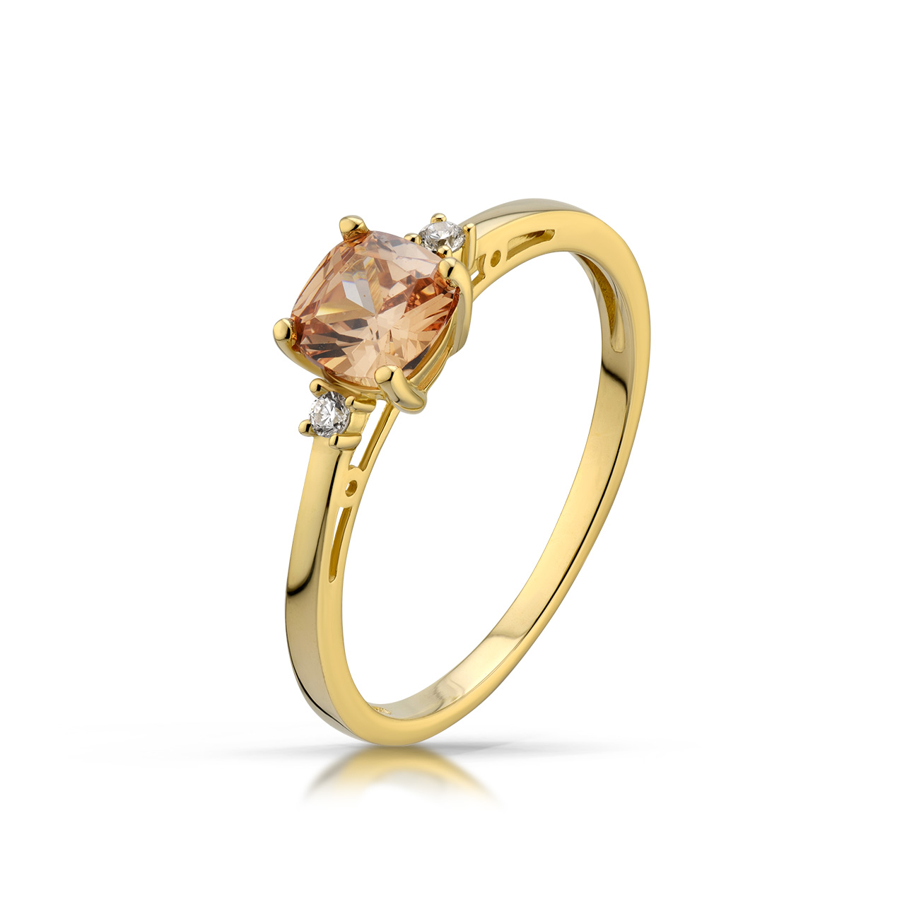 Pierścionek wykonany ze złota próby 0,333 lub 0,585 w kolorze żółtym, białym lub różowym. Może być ozdobiony diamentami naturalnymi, diamentami laboratoryjnymi, cyrkoniami lub kamieniami barwnymi. Staranna oprawa zapewnia trwałość oraz piękny połysk przez lata. Doskonały wybór na prezent.