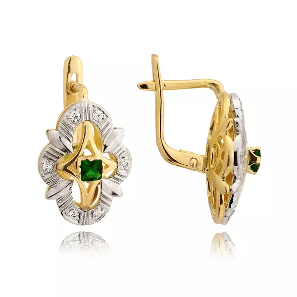 Kolczyki wykonane ze złota próby 0,333 lub 0,585 w kolorze żółtym, białym lub różowym. Ozdobione kamieniami naturalnymi lub laboratoryjnymi, takimi jak diamenty, cyrkonie lub kamienie barwne. Staranna oprawa zapewnia trwałość oraz piękny połysk przez lata. Doskonały wybór na prezent lub do własnej kolekcji.