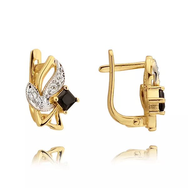Kolczyki wykonane ze złota próby 0,333 lub 0,585 w kolorze żółtym, białym lub różowym. Ozdobione kamieniami naturalnymi lub laboratoryjnymi, takimi jak diamenty, cyrkonie lub kamienie barwne. Staranna oprawa zapewnia trwałość oraz piękny połysk przez lata. Doskonały wybór na prezent lub do własnej kolekcji.