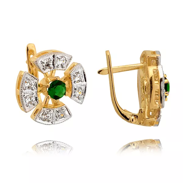 Kolczyki wykonane ze złota próby 0,333 lub 0,585 w kolorze żółtym, białym lub różowym. Ozdobione kamieniami naturalnymi lub laboratoryjnymi, takimi jak diamenty, cyrkonie lub kamienie barwne. Staranna oprawa zapewnia trwałość oraz piękny połysk przez lata. Doskonały wybór na prezent lub do własnej kolekcji.