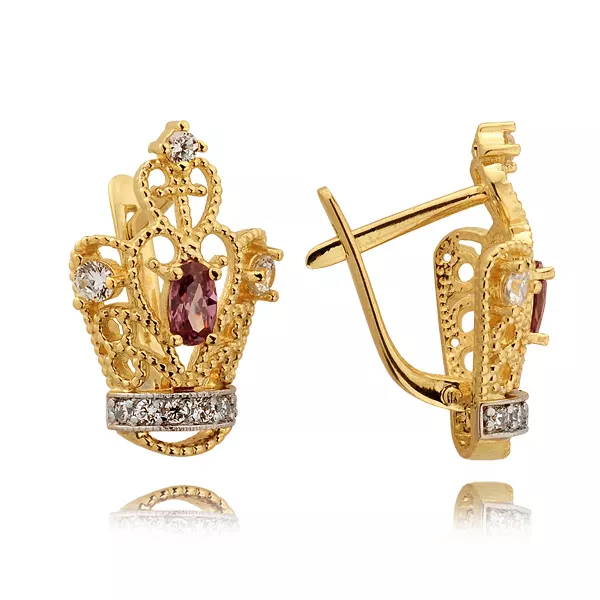 Kolczyki wykonane ze złota próby 0,333 lub 0,585 w kolorze żółtym, białym lub różowym. Ozdobione kamieniami naturalnymi lub laboratoryjnymi, takimi jak diamenty, cyrkonie lub kamienie barwne. Staranna oprawa zapewnia trwałość oraz piękny połysk przez lata. Doskonały wybór na prezent lub do własnej kolekcji.