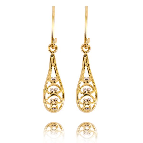 Kolczyki wykonane ze złota próby 0,333 lub 0,585 w kolorze żółtym, białym lub różowym. Ozdobione kamieniami naturalnymi lub laboratoryjnymi, takimi jak diamenty, cyrkonie lub kamienie barwne. Staranna oprawa zapewnia trwałość oraz piękny połysk przez lata. Doskonały wybór na prezent lub do własnej kolekcji.