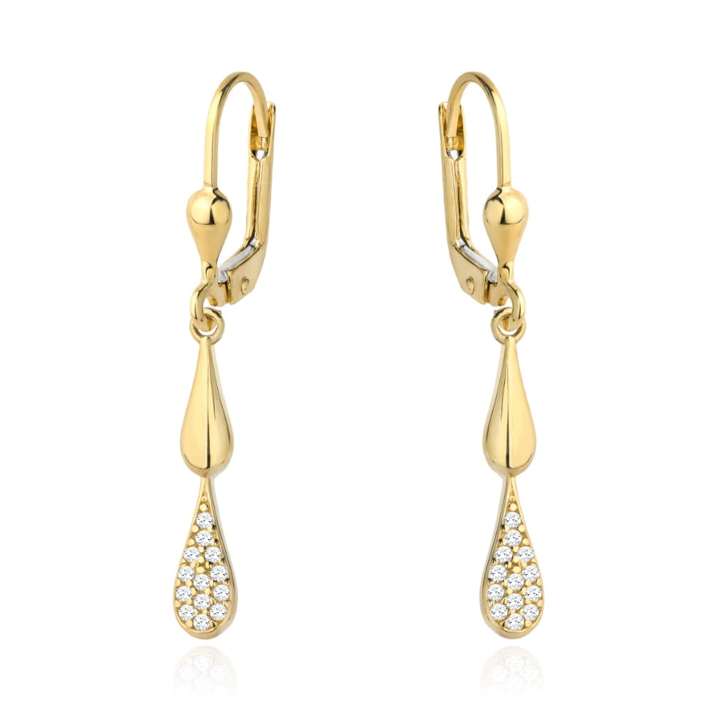 Kolczyki dwie złote krople gładka i wysadzana cyrkoniami