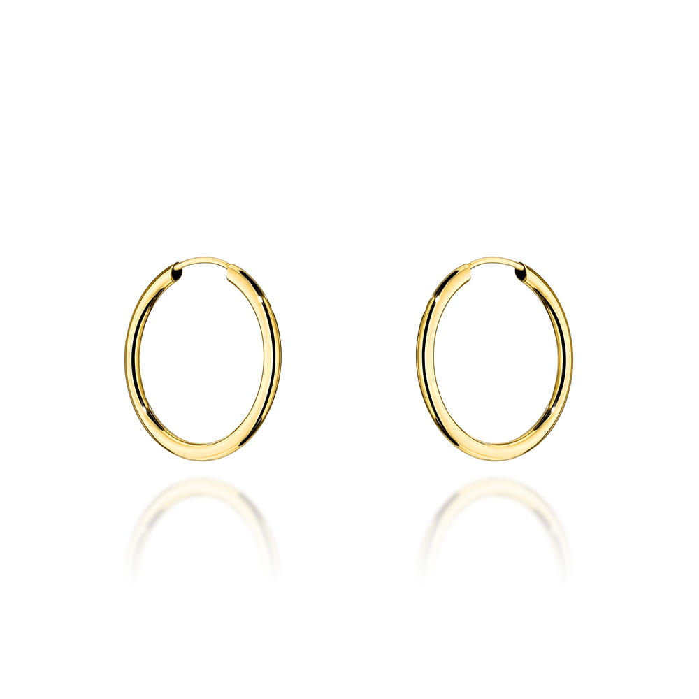 Precyzyjnie wykonane złote kolczyki koła super lekkie próby 585. Doskonałe jako prezent na imieniny, ważny jubileusz ozdoba eleganckiej kreacji.