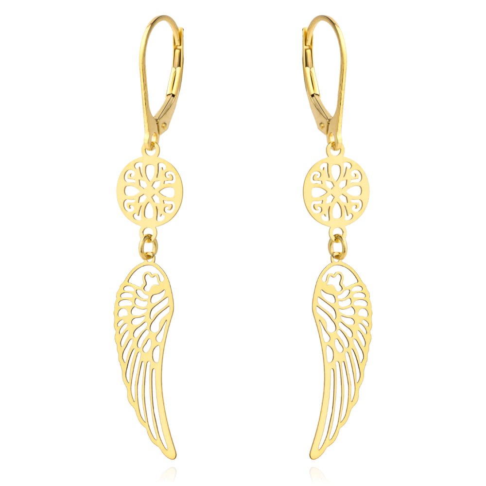 Kolczyki złote ażurowe kółeczko i skrzydło na angielskim zapięciu