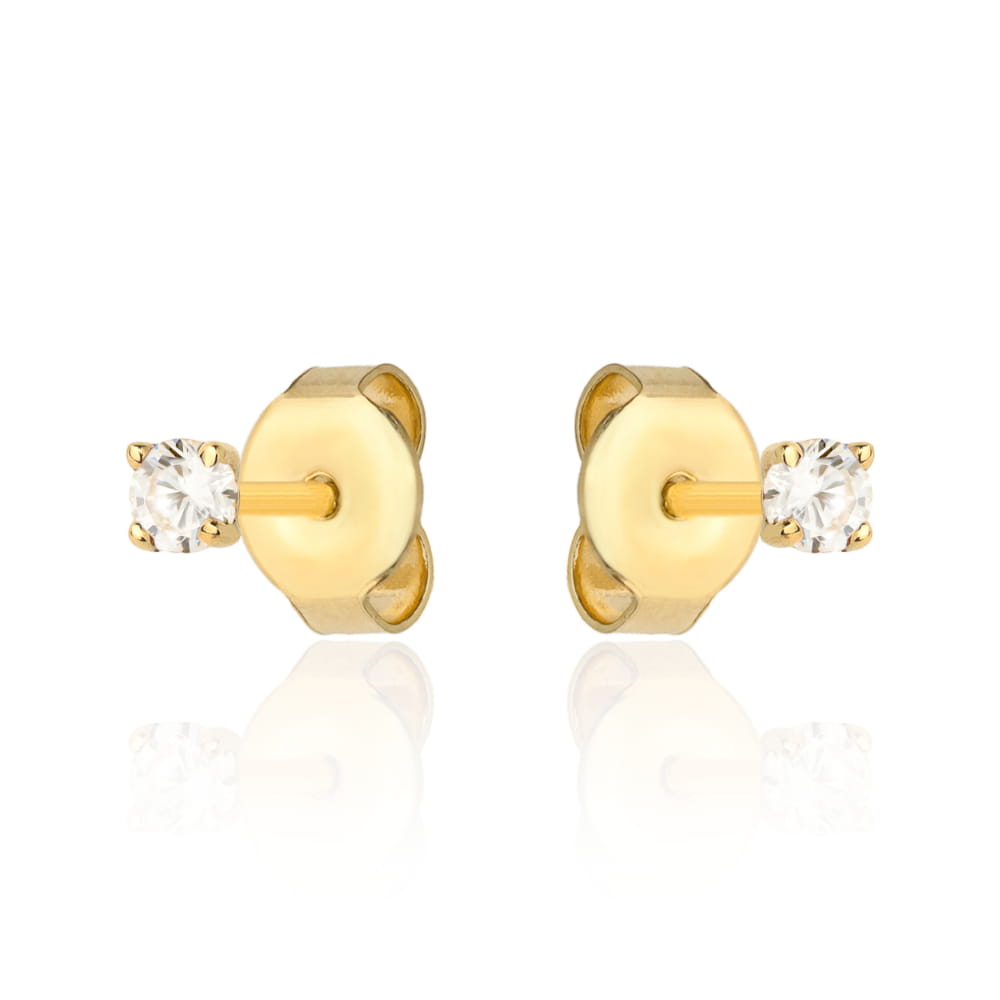 Kolczyki złote biała cyrkonia w czterech łapkach na sztyfcie