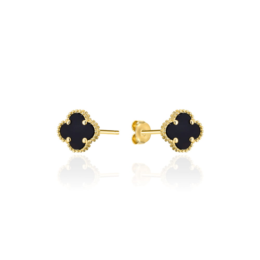 Kolczyki złote czarne koniczynki 4mm