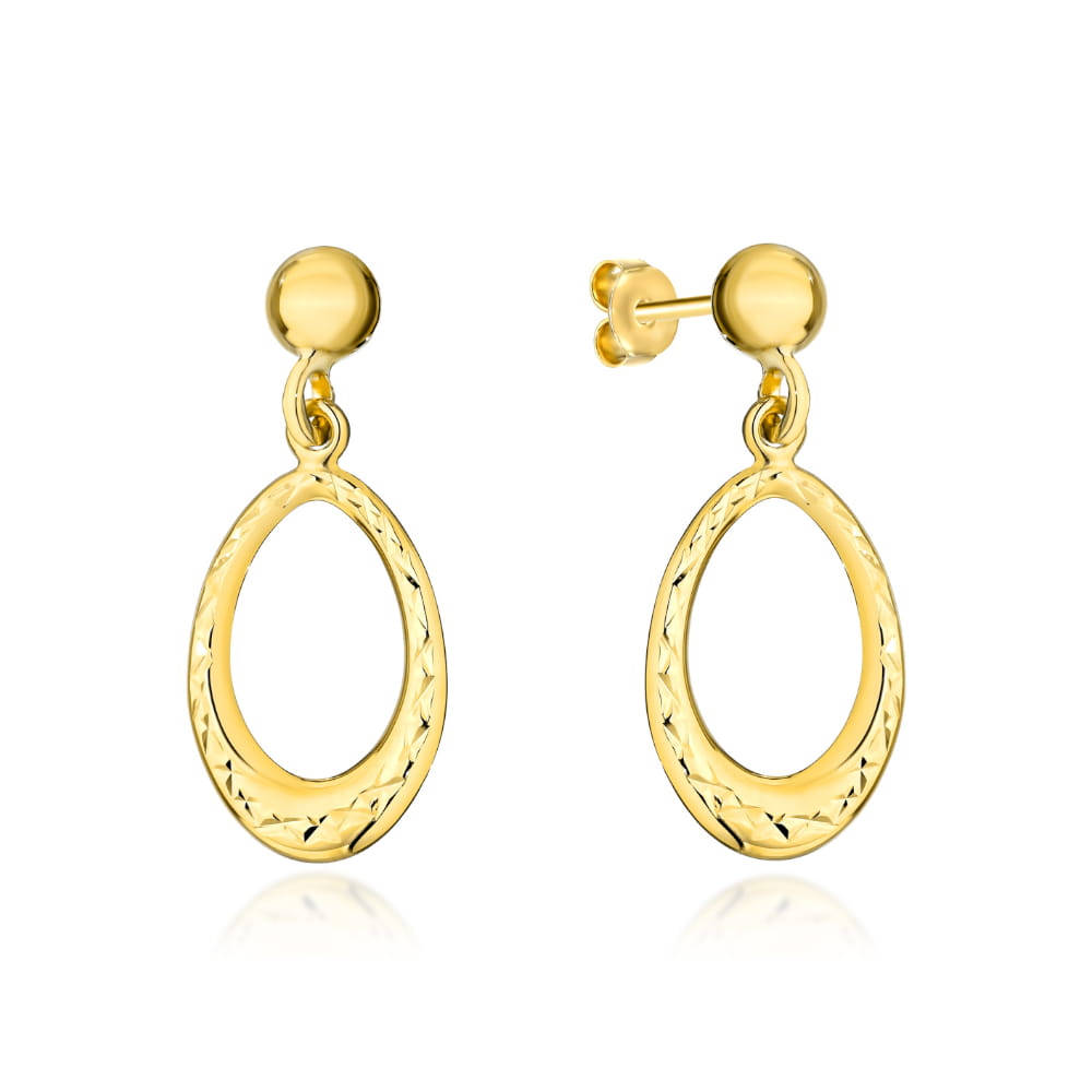 Precyzyjnie wykonane złote kolczyki próby 585. Doskonałe jako prezent na imieniny, urodziny. Niespodzianka na ważny jubileusz czy też ozdoba eleganckiej kreacji.