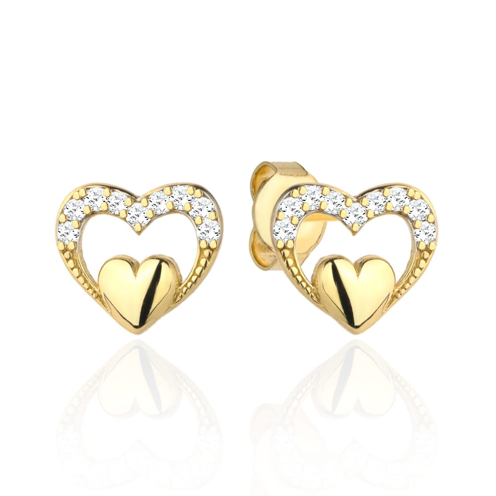 Kolczyki złote gładkie serduszko w sercu z cyrkonii