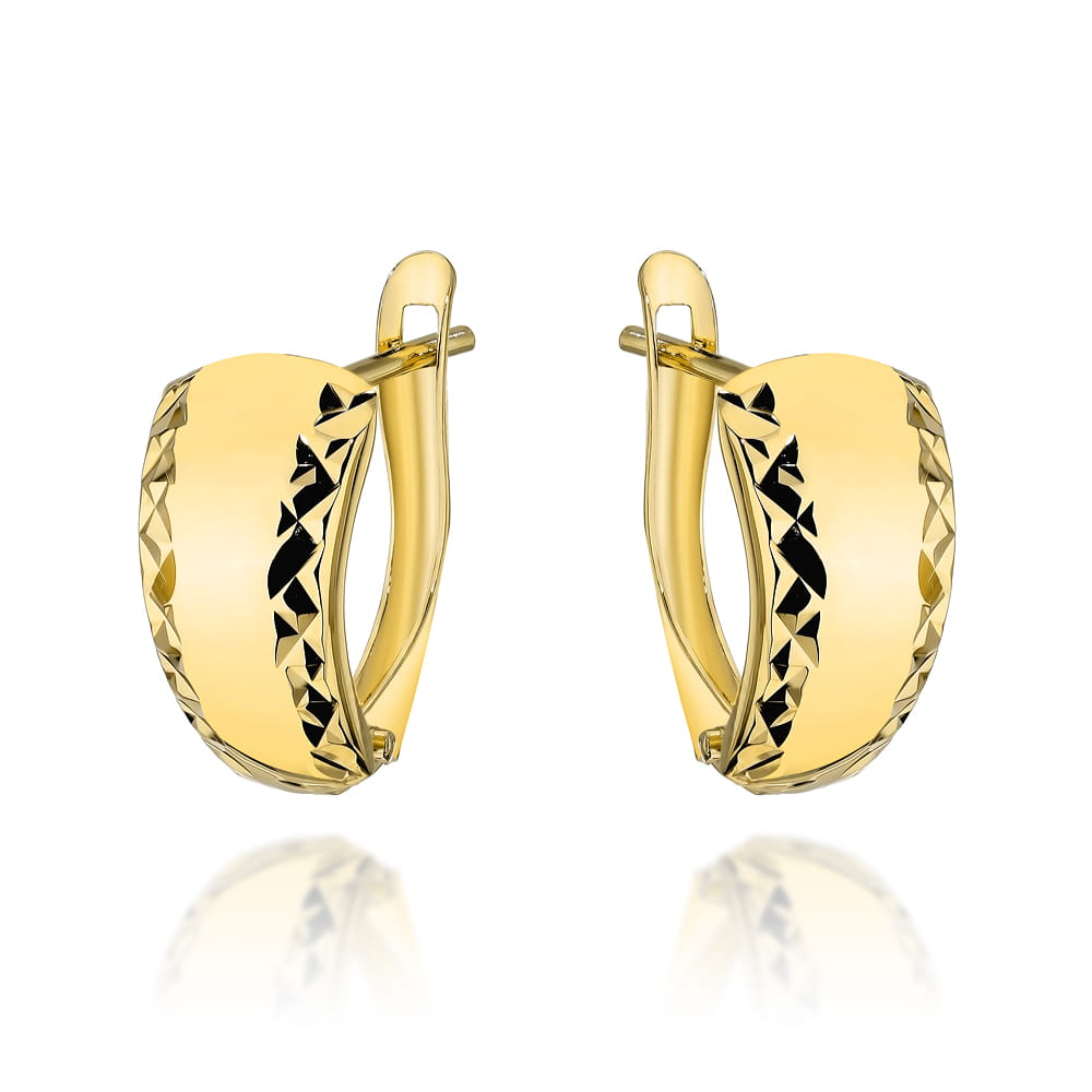 Kolczyki złote gładkie z diamentowanymi brzegami