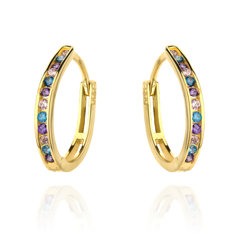 Kolczyki złote i kolorowe cyrkonie