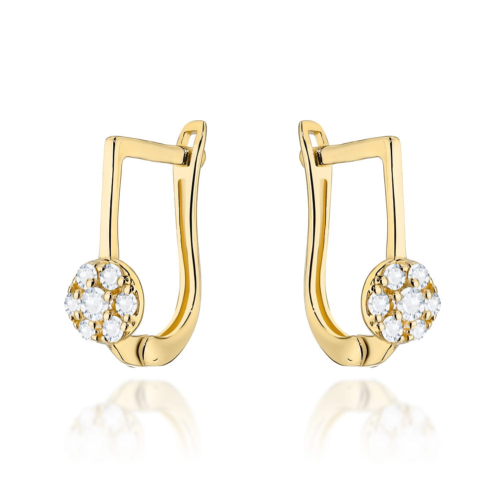 Kolczyki złote kółeczka wysadzane cyrkoniami na angielskim zapięciu