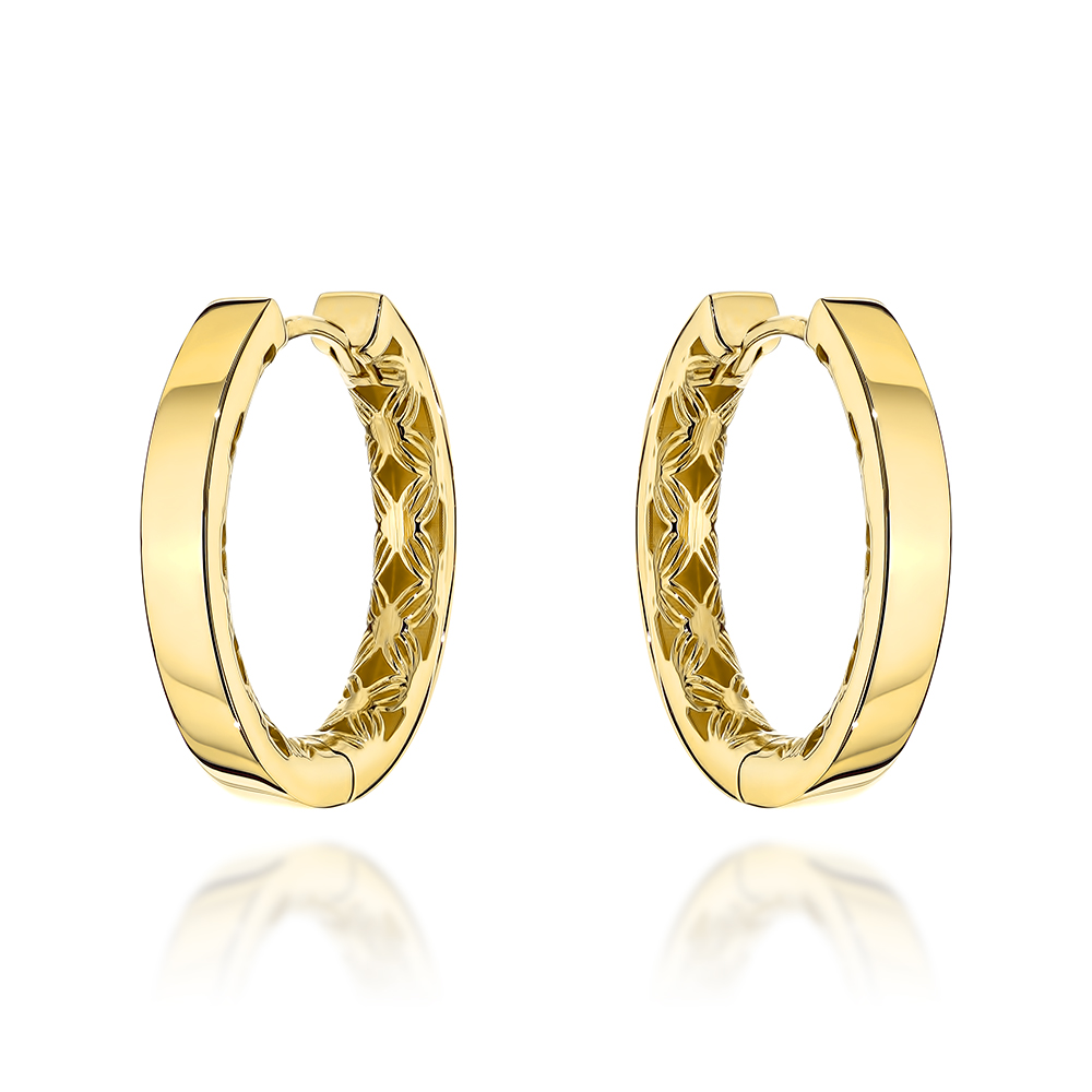 Kolczyki złote kółka gładkie wewnętrznie zdobione ażurem