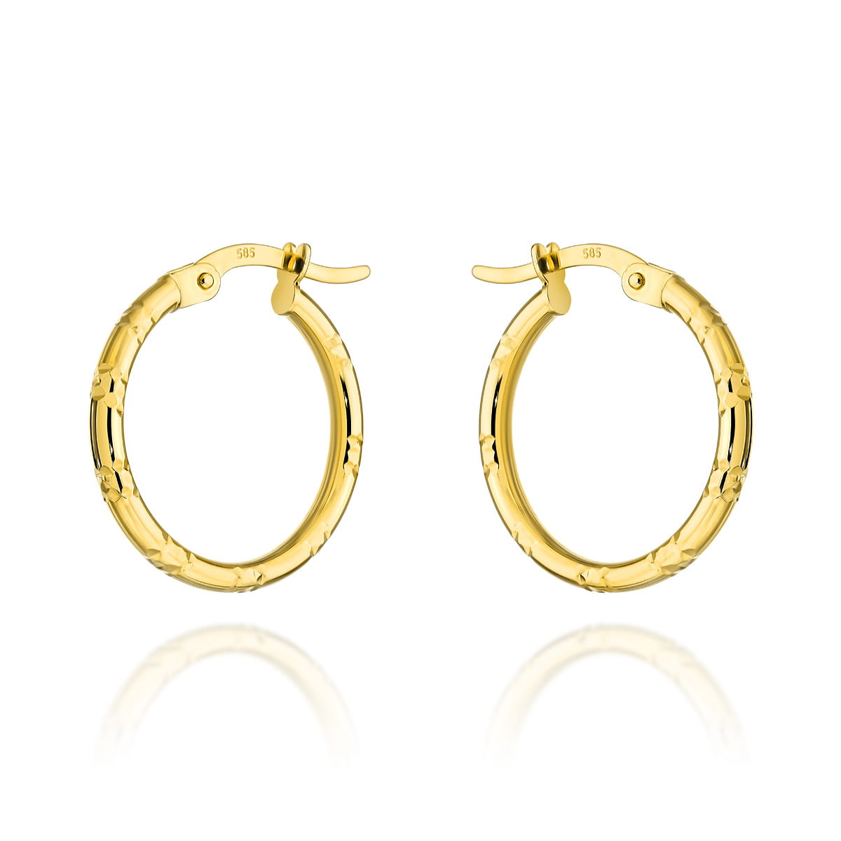 Precyzyjnie wykonane złote kolczyki próby 585. Doskonałe jako prezent na imieniny, ważny jubileusz ozdoba eleganckiej kreacji .