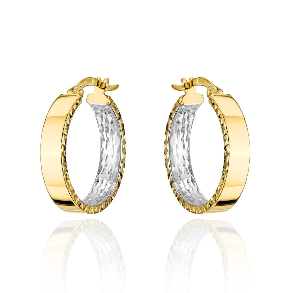 Kolczyki złote kółka wewnętrznie diamentowane w dwóch kolorach złota