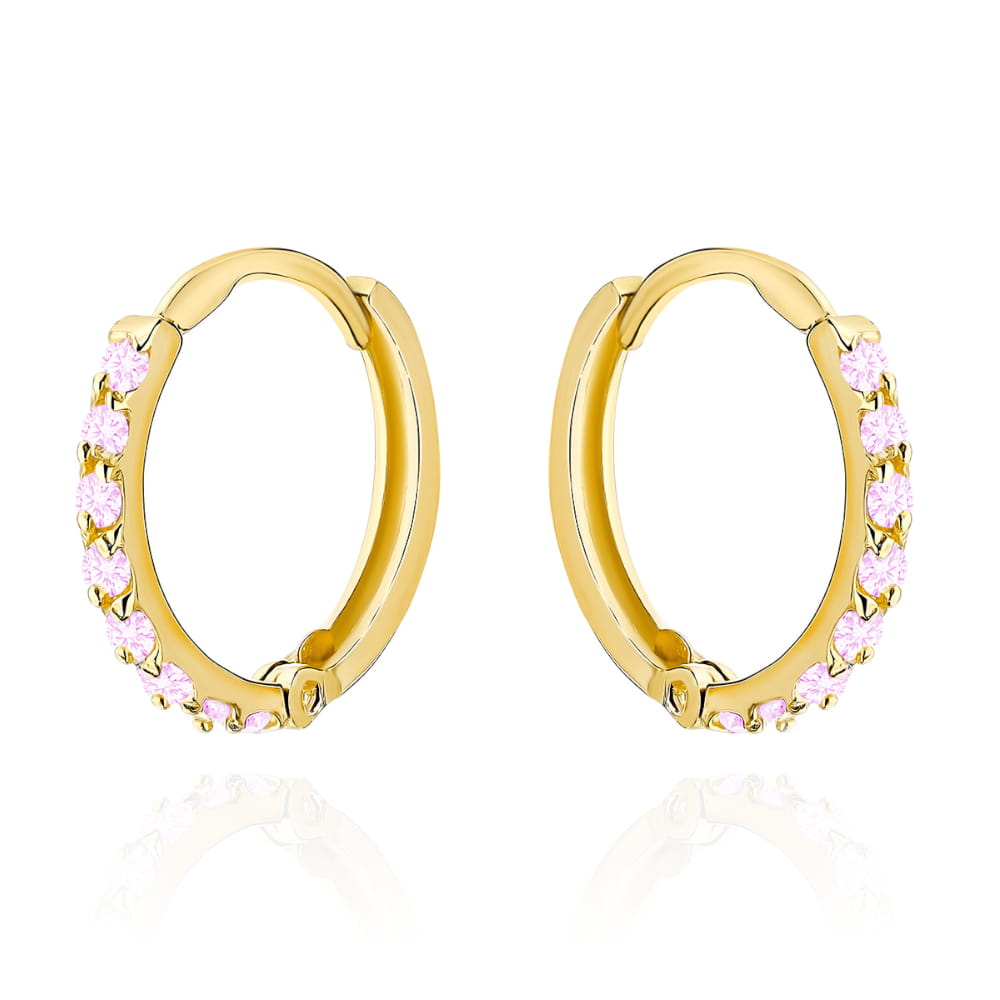 Kolczyki złote kółka z różowymi kamieniami