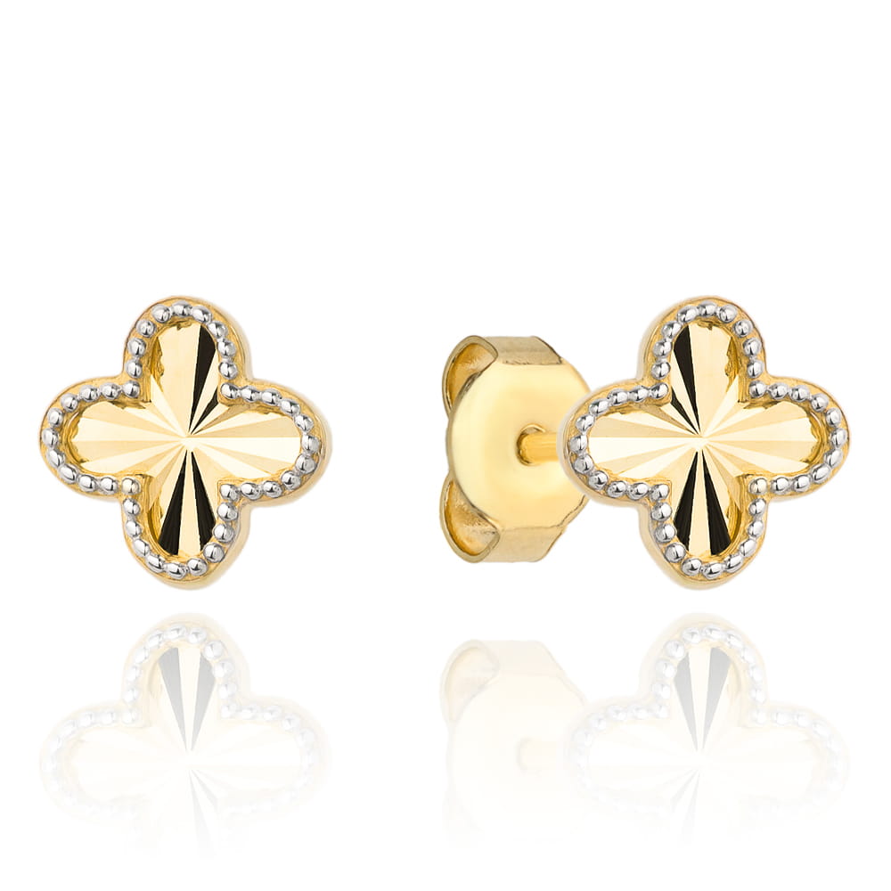 Kolczyki złote koniczynki diamentowane z oprawą w białym złocie