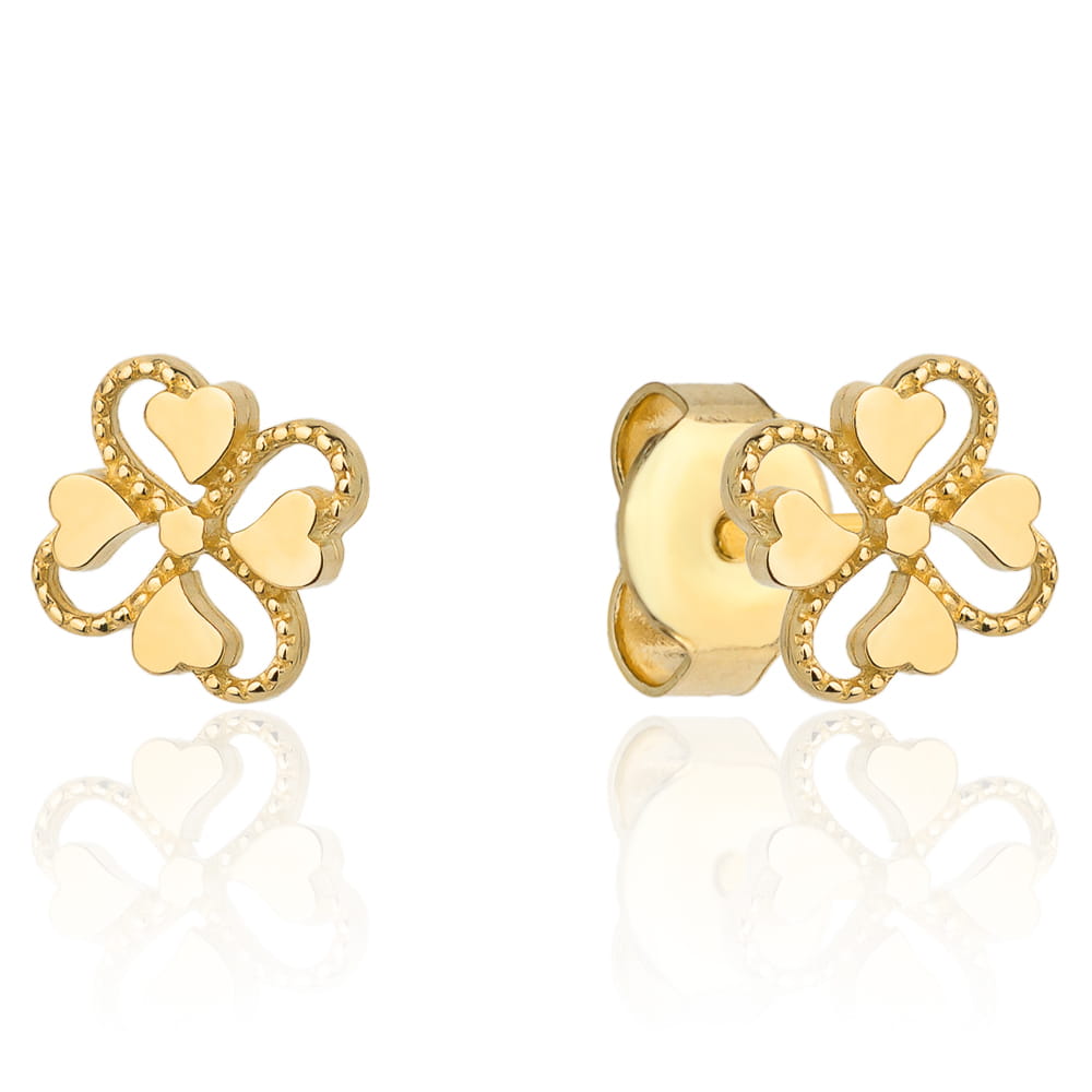 Precyzyjnie wykonane złote kolczyki próby 585. Doskonałe na prezent na dzień matki, imieniny, Pierwszą Komunię, Bierzmowanie, Walentynki czy też inny ważny jubileusz.