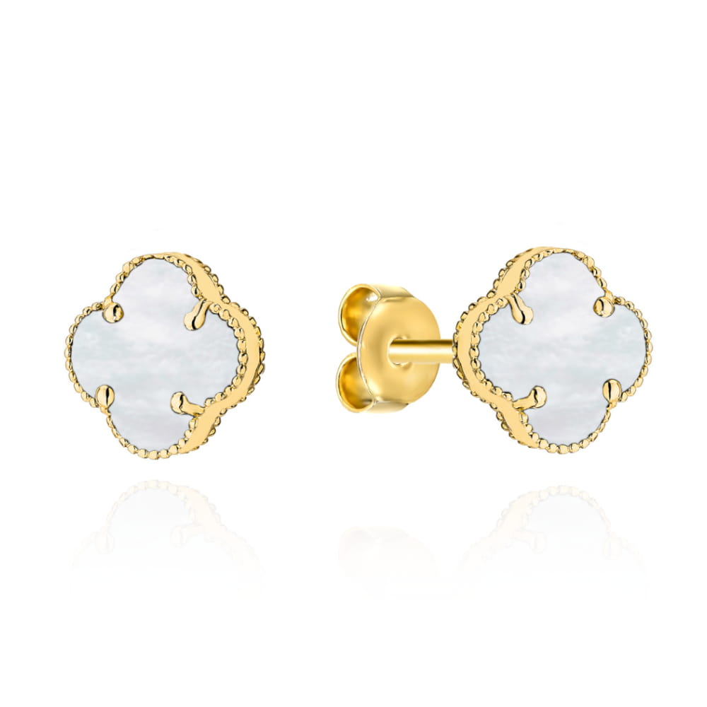 Kolczyki złote koniczynki z masą perłową 8mm
