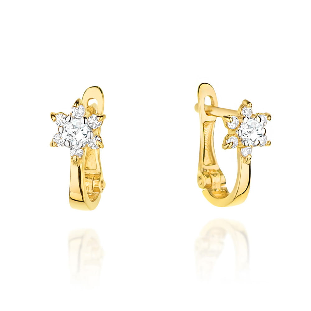 Precyzyjnie wykonane złote kolczyki dziecięce próby 585. Doskonałe jako prezent lub jako ozdoba codziennej stylizacji.