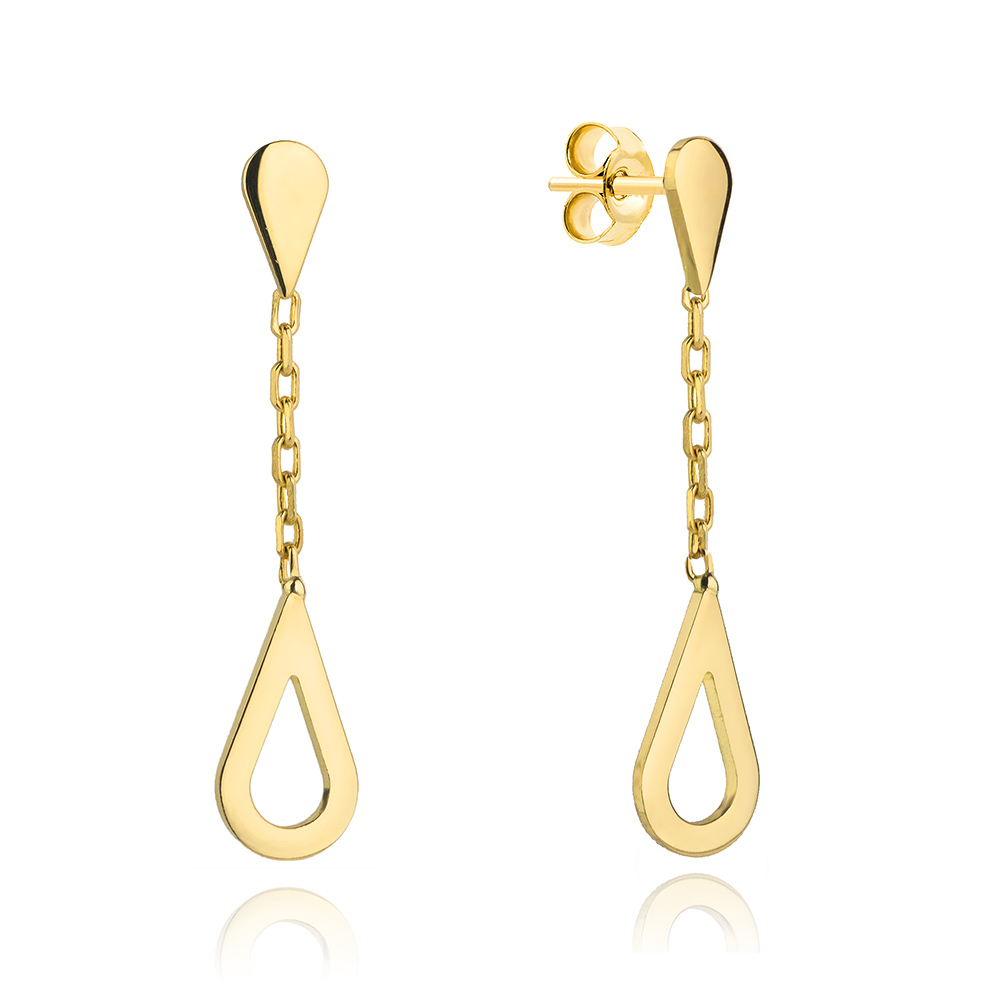 Kolczyki złote łezka zawieszone na łezce łańcuszek