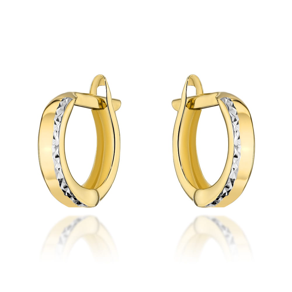 Kolczyki złote małe z diamentowanym paskiem w białym złocie
