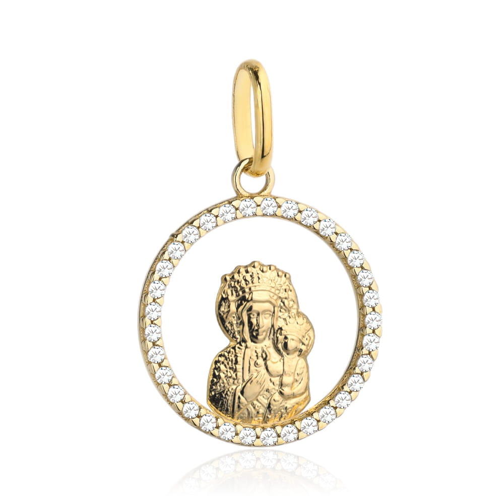 Medalik Matka Boska z dzieciątkiem w kole wysadzanym cyrkoniami