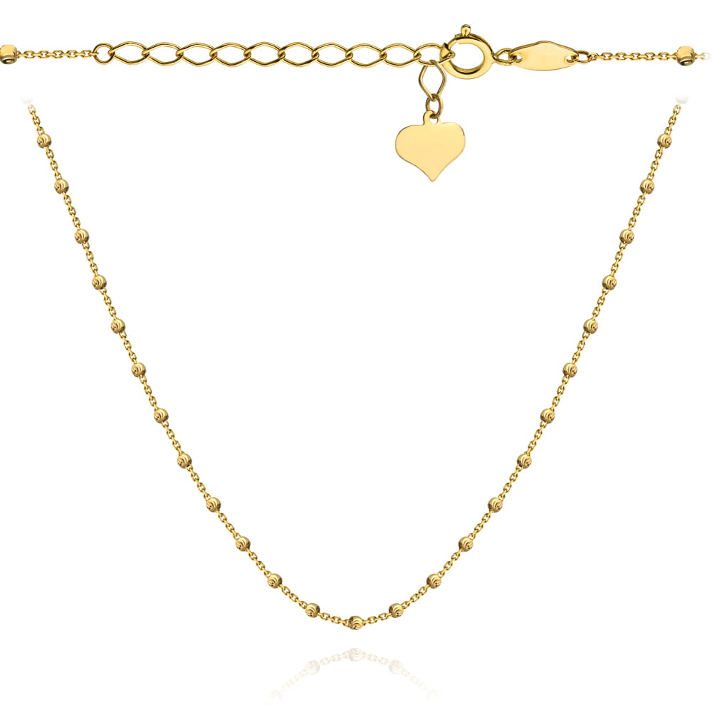 Naszyjnik złoty z diamentowanymi kuleczkami i serce 42+3cm