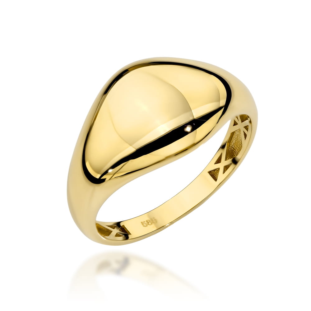 Precyzyjnie wykonany złoty pierścionek próby 585. Doskonały jako prezent dla ukochanej osoby na dzień kobiet, dzień matki, rocznicę czy jubileusz. Wnętrze ozdobione ażurowym wzorem