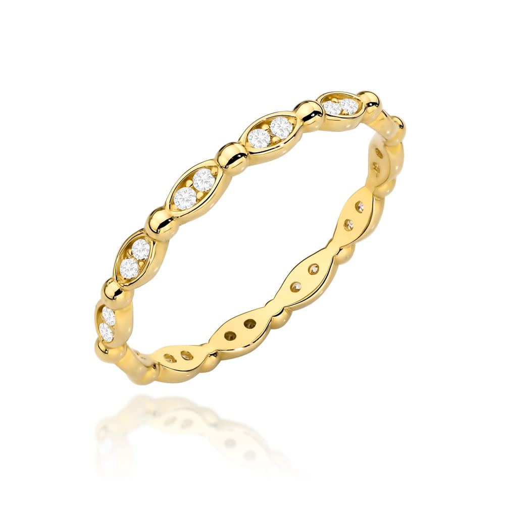 Pierścionek złoty z cyrkoniami i kuleczkami