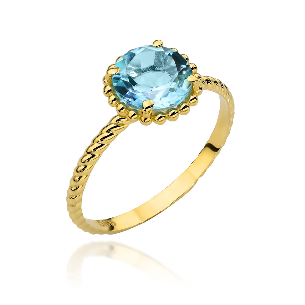 Precyzyjnie wykonany złoty pierścionek próby 585 z kamieniem NATURALNY TOPAZ.