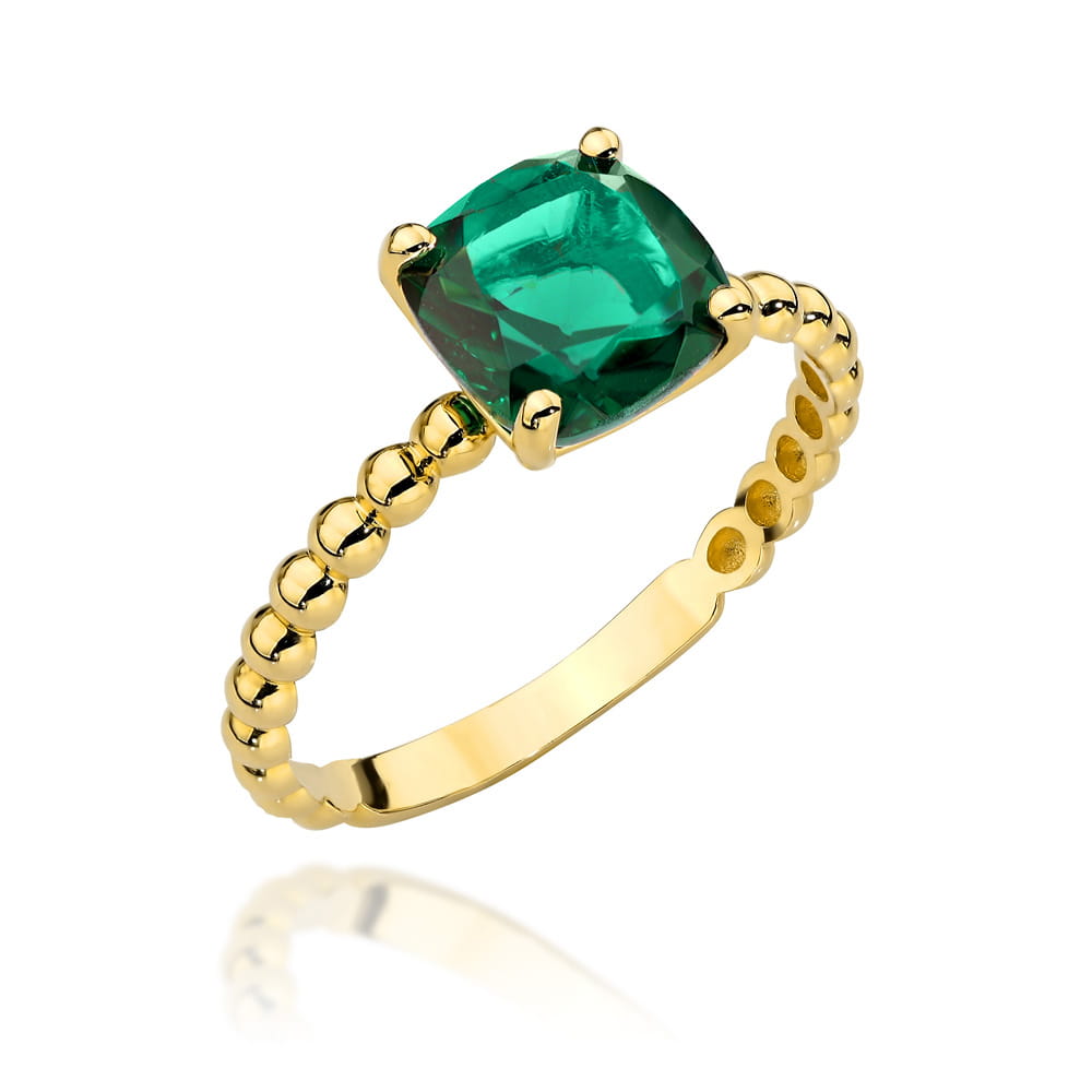 Pierścionek złoty z kolekcji „COLORFUL STONE” – zielony kwarc kwadrat