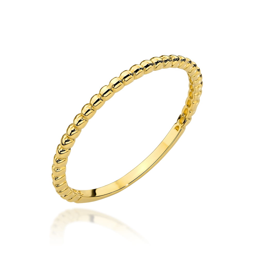 Precyzyjnie wykonany złoty pierścionek próby 585. Doskonały jako prezent dla ukochanej osoby na Dzień Kobiet, Dzień Matki, rocznicę czy jubileusz. Ozdoba codziennej kreacji.