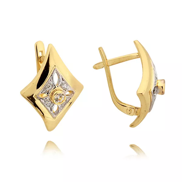 Kolczyki złote zaprojektowane w eleganckim, ponadczasowym stylu. Starannie dobrane kamienie pięknie odbijają światło, podkreślając szlachetność kruszcu. Doskonały wybór dla kobiet ceniących klasykę i jakość.