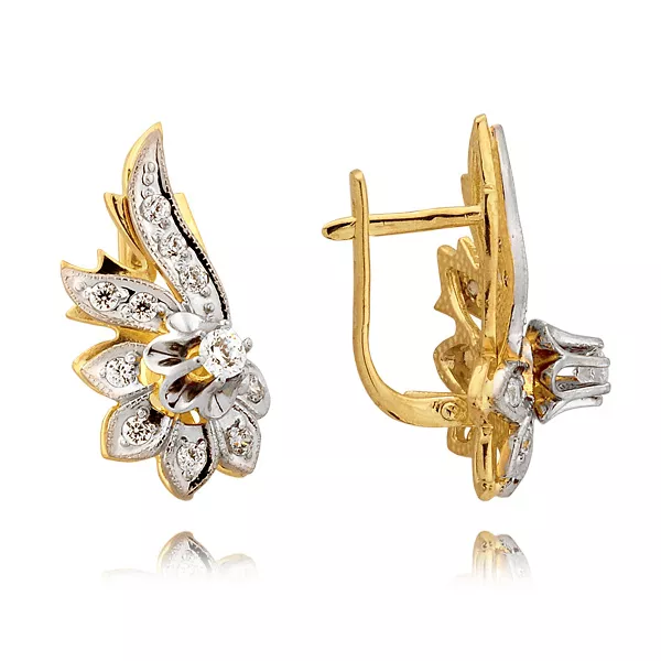 Stylowe kolczyki łączące tradycyjne jubilerstwo z nowoczesnym wzornictwem. Zastosowanie kamieni barwnych lub bezbarwnych nadaje im indywidualnego charakteru i wyjątkowego połysku.