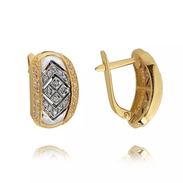 Stylowe kolczyki łączące tradycyjne jubilerstwo z nowoczesnym wzornictwem. Zastosowanie kamieni barwnych lub bezbarwnych nadaje im indywidualnego charakteru i wyjątkowego połysku.