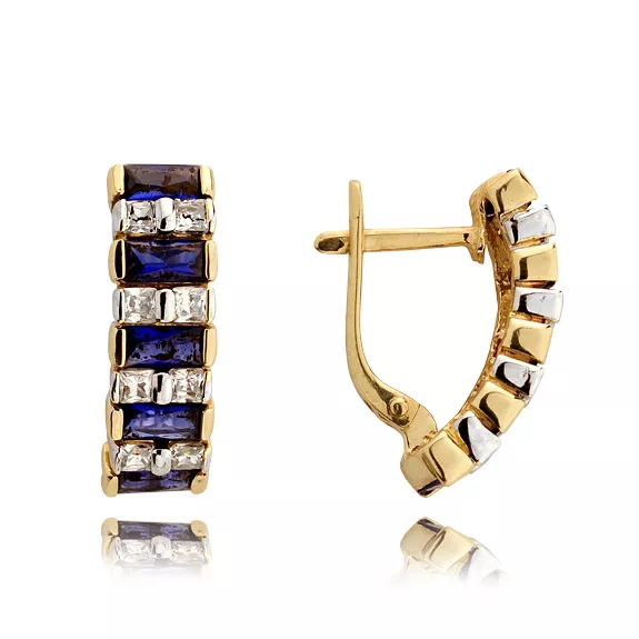 Wyjątkowe kolczyki ze złota o uniwersalnym charakterze. Kamienie szlachetne lub syntetyczne nadają im elegancji i subtelnego blasku. Biżuteria doskonale sprawdzi się jako prezent na każdą okazję.