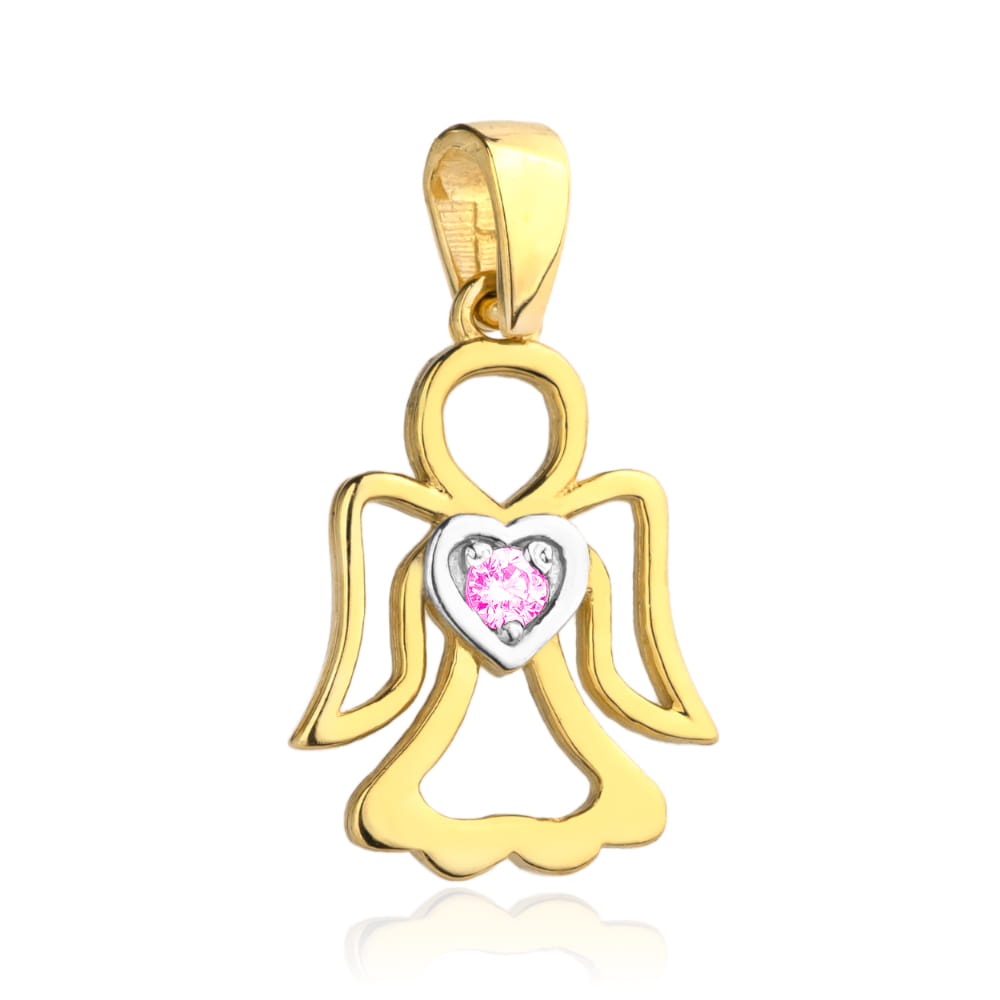 Zawieszka wisiorek Aniołek z różową cyrkonią w serduszku